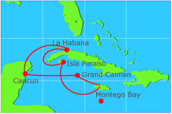Este paquete de crucero único incluye el único punto de partida de la Habana, que ahora se encuentra disponible a nuestra clientela internacional, además de un crucero de 7 días por las islas de las Antillas. Con escalas que incluyen: Cozumel/Cancun, Jamaica, Gran Caimán y la isla del Paraíso de Cuba, descubrirás el Caribe en un estilo todo incluido desde nuestra ciudad de embarque exclusiva llamada La Habana! De un lujo y valor increíble que en estos momentos se encuentra disponible a todos. Pregúntenos sobre los vuelos u ofertas gratis de vuelos.